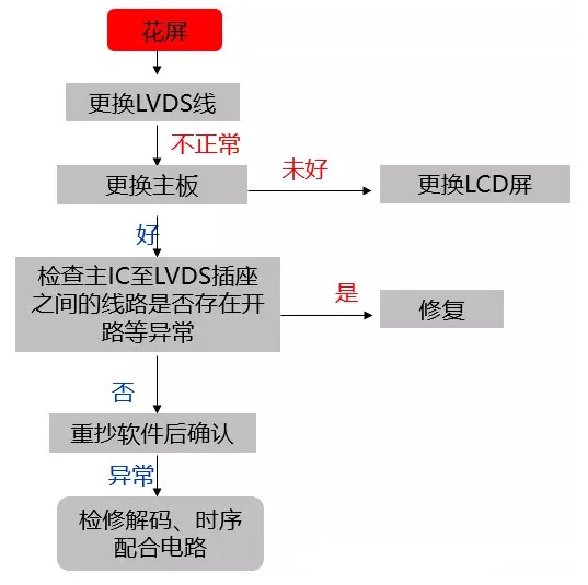3、故障現象:花屏。檢修流程如圖3: