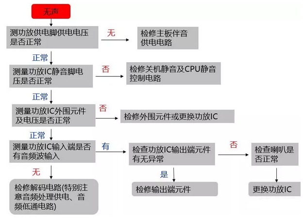 4、故障現象:無聲。檢修流程如圖4: