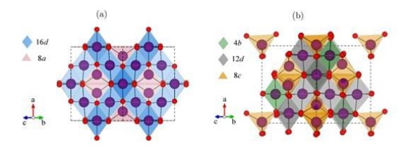 圖三展示了 Grey 教授在研究尖晶石結構的鋰過渡金屬氧化物的較新成果 (Chem. Mater. 2018, 30, 817?829)。 文章在研究 LiTixMn2-xO4 (0.2≤x≤1.5) 材 料時,利用 NMR 等表征技術,結合 DFT 理論計算,研究了不同 Ti 摻雜對 LTMO 結構的影響。 通過研究發現 Ti 摻雜的存在使得材料的結構隨著 Ti 含量的變化而 發生變化。 在 X=0.2 時, LTMO 中的 Ti4+和 Mn3+/4+ 呈隨機分布;在 X=0.4 時 則具有富含 Ti4+ 和 Mn4+的不均勻晶格;在 x=0.6 和 0.8 時會形成單相固溶體;而 在 x=1 時則呈現 Li-Mn2+ 四面體和 Li-Mn3+/4+ -Ti 八面體構型的組合。 這項工 作也為研究其他電池電極材料的結構變化提供了參考依據。
